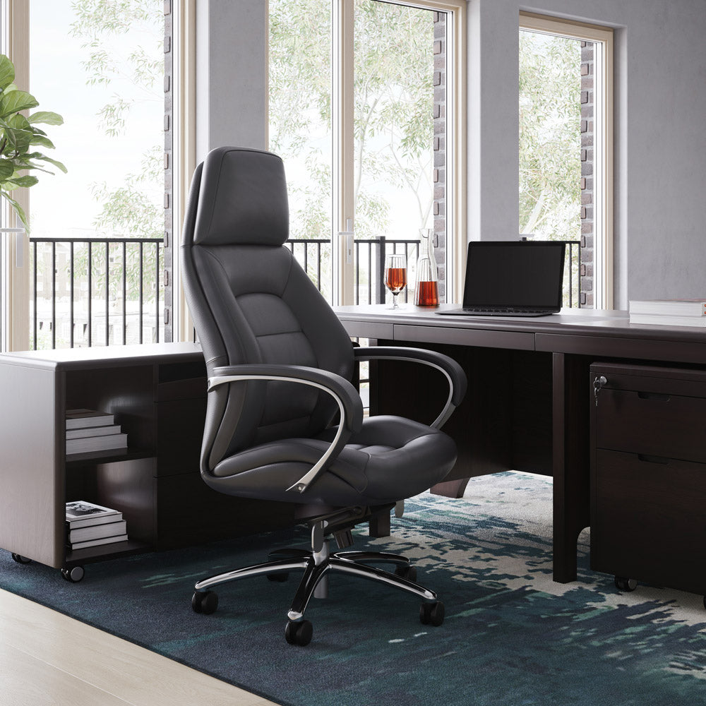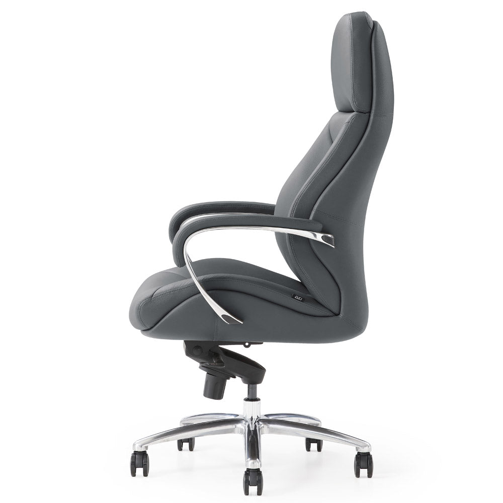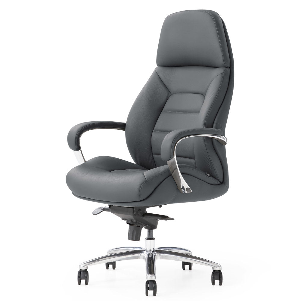 Experience the pinnacle of office comfort with the Livvity Leather Executive Chair. This chair is built for durability and style, featuring a plush, heavy-duty leatherette finish on the seat and armrests, with a matching material on the back. The sleek, polished aluminum base is equipped with a 360-degree swivel and five smooth-rolling castor wheels for effortless mobility.
